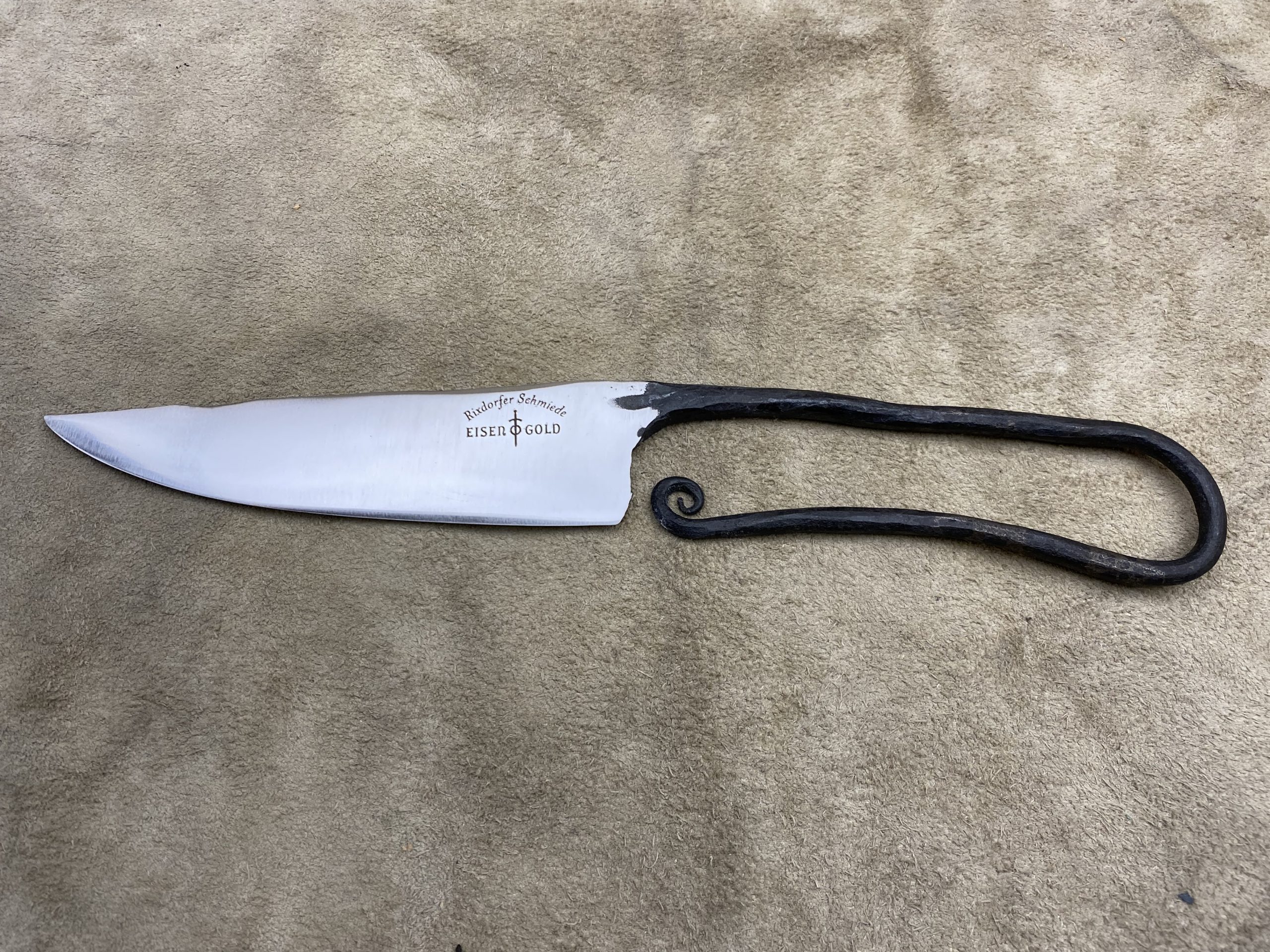 Handgeschmiedetes „Landhausmesser“ aus Carbonstahl, mit Ganzstahl-Griff